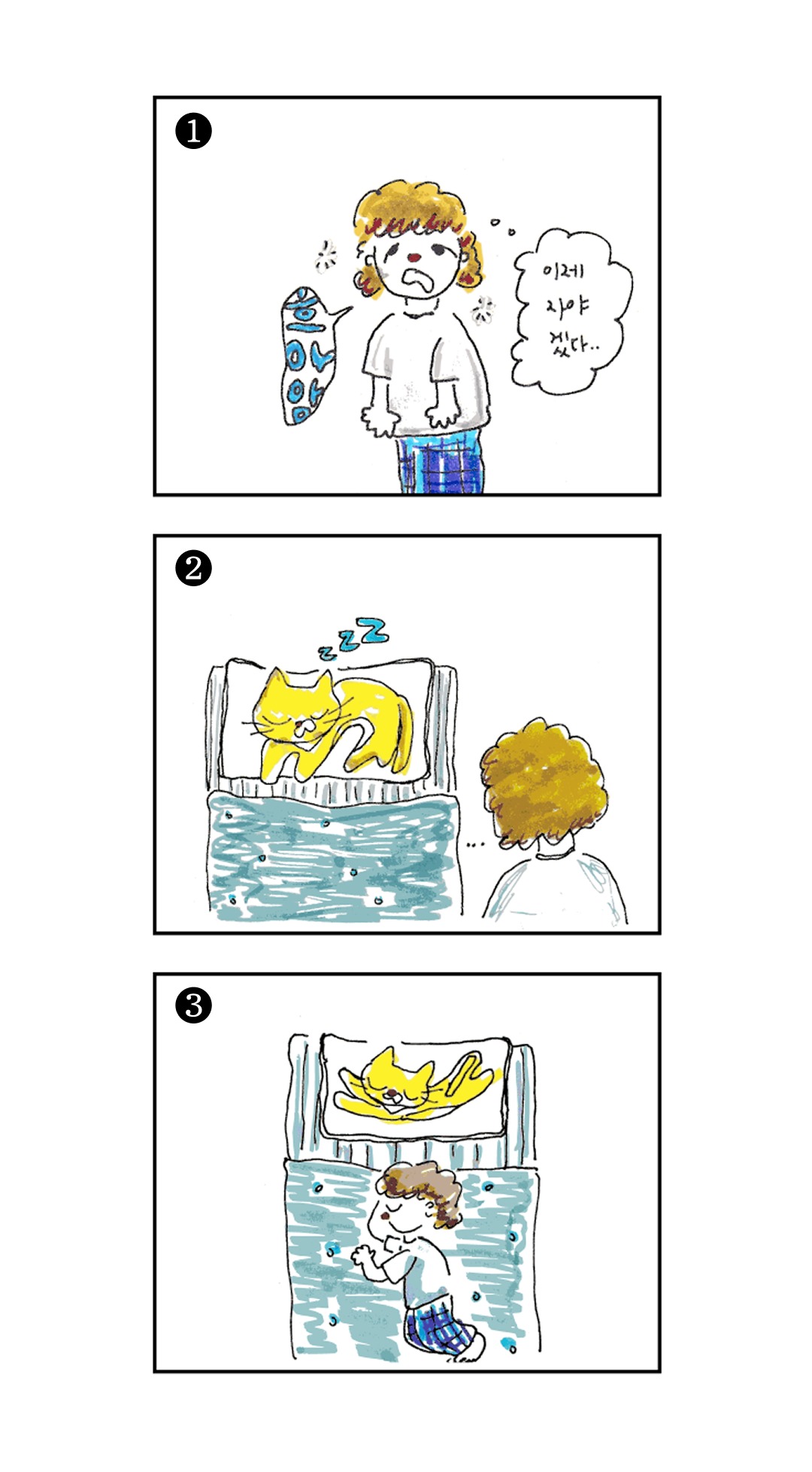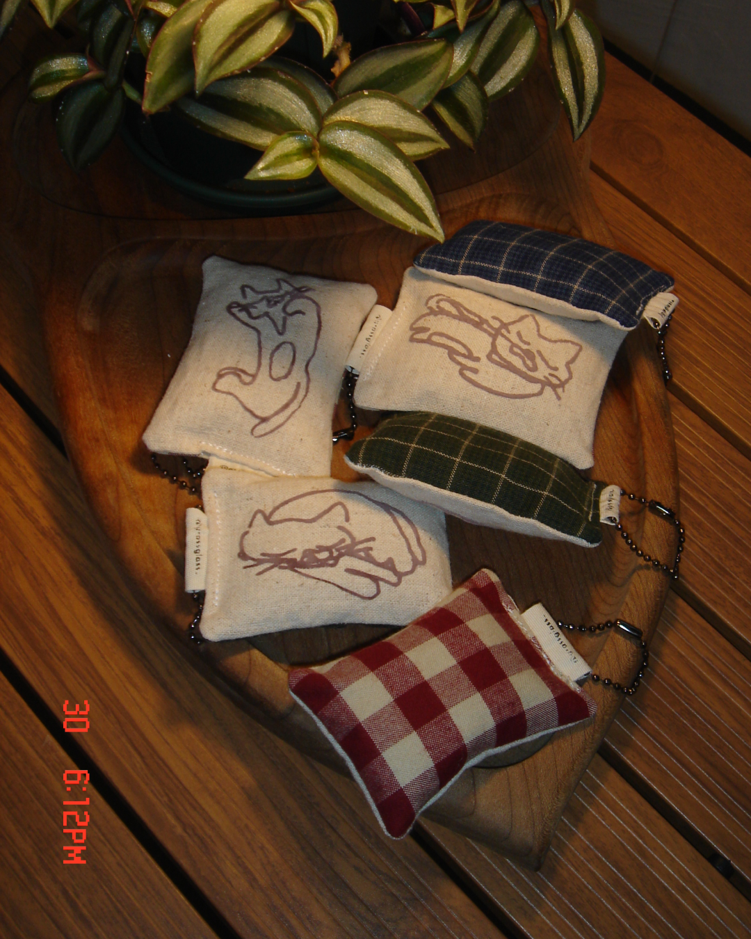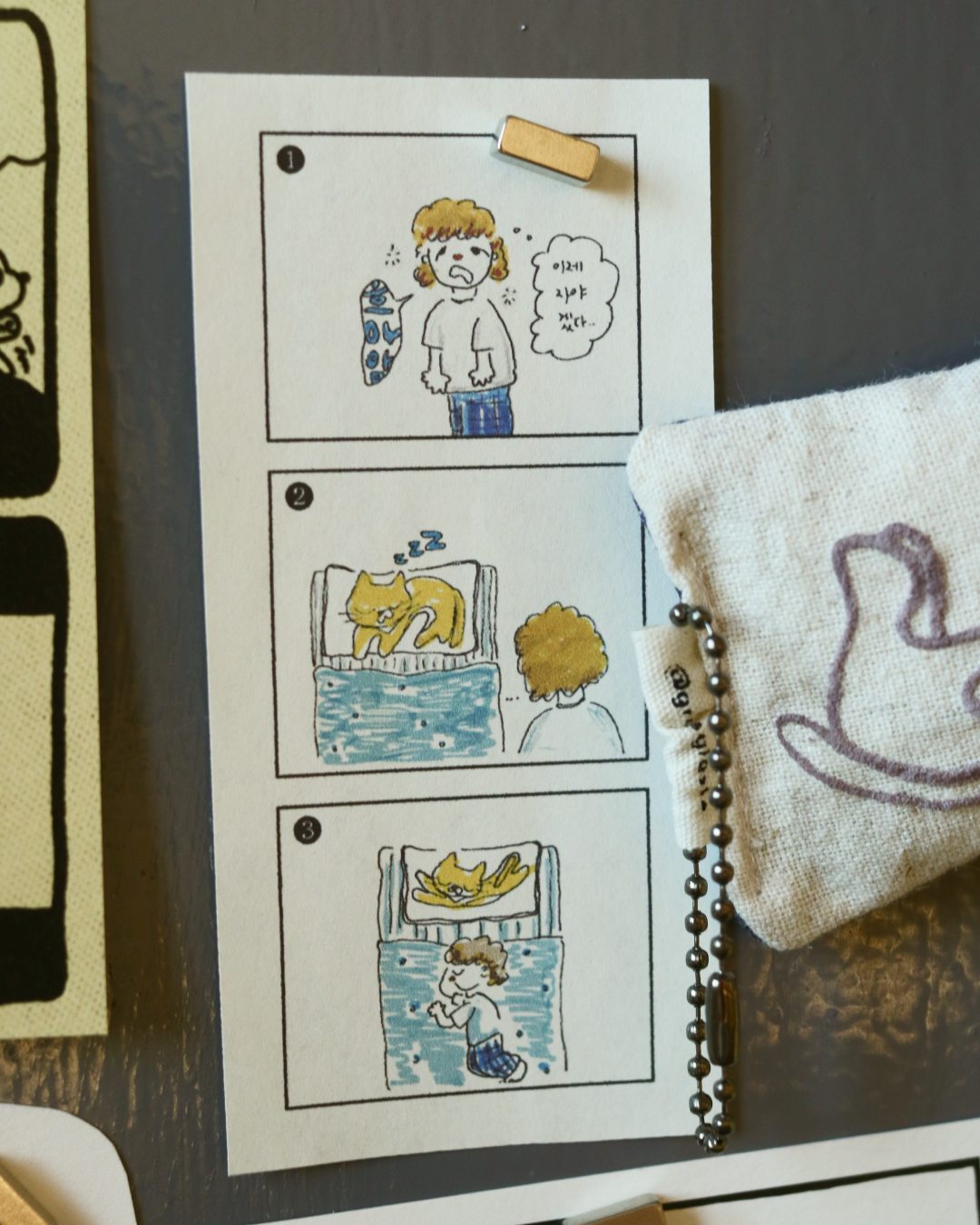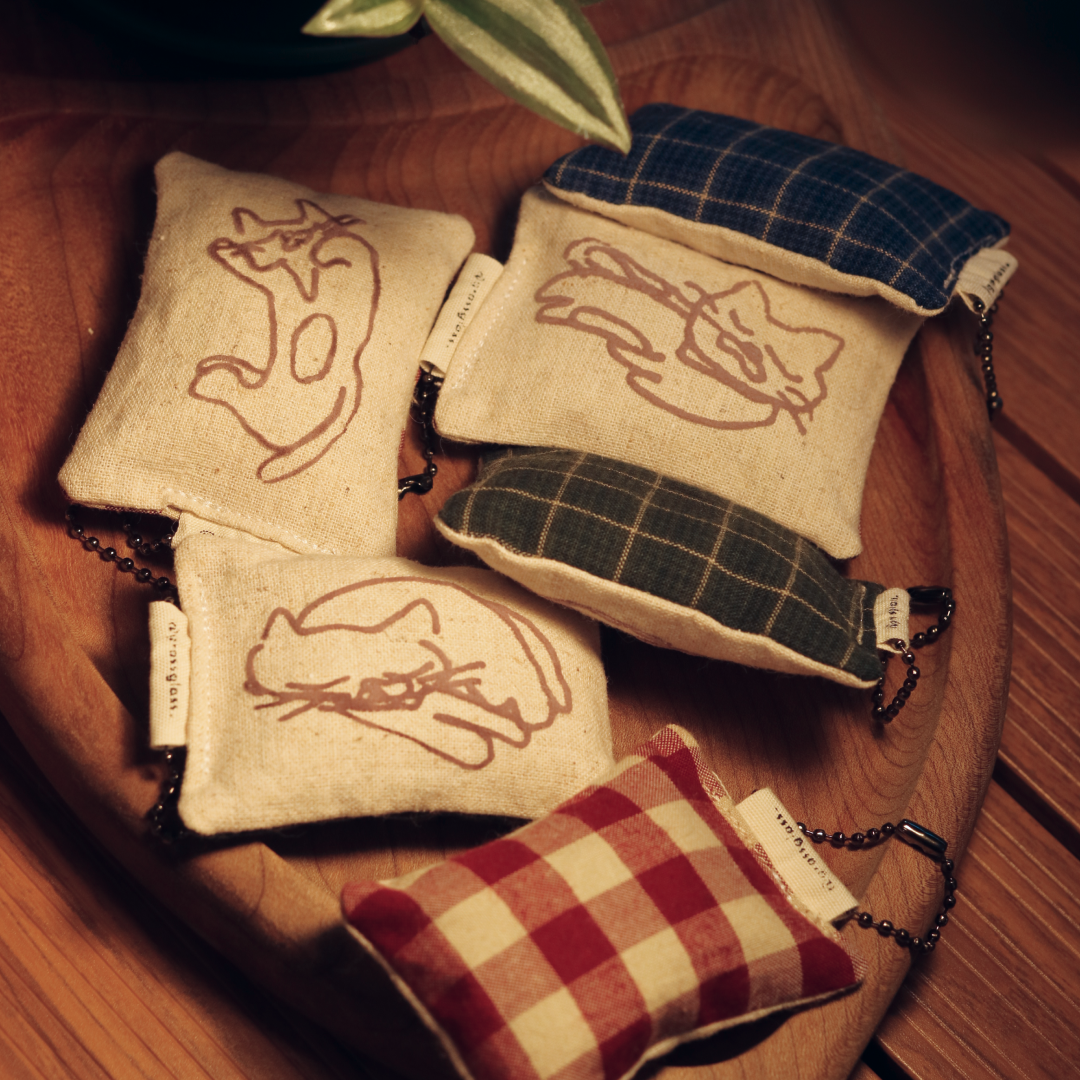 고양이가 자고 있는 포즈 3종 /뒷면의 체크패턴 패브릭이 랜덤발송됩니다 ☻