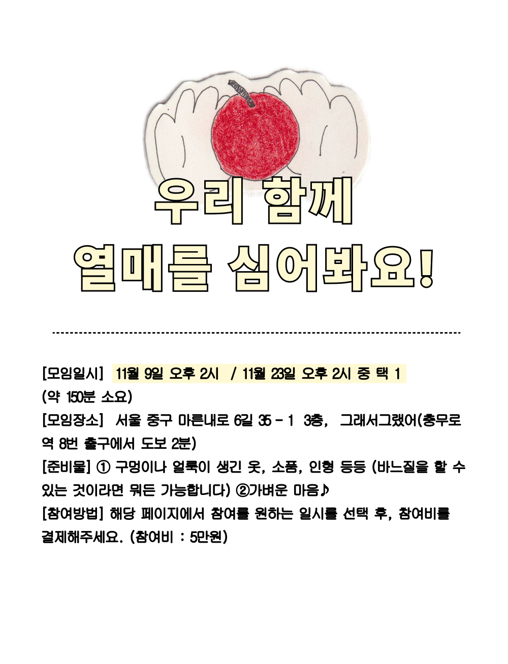 [라운드베리즈X그래서그랬어 11月소모임] 구멍 혹은 얼룩에 열매를 심어보자.ᐟ