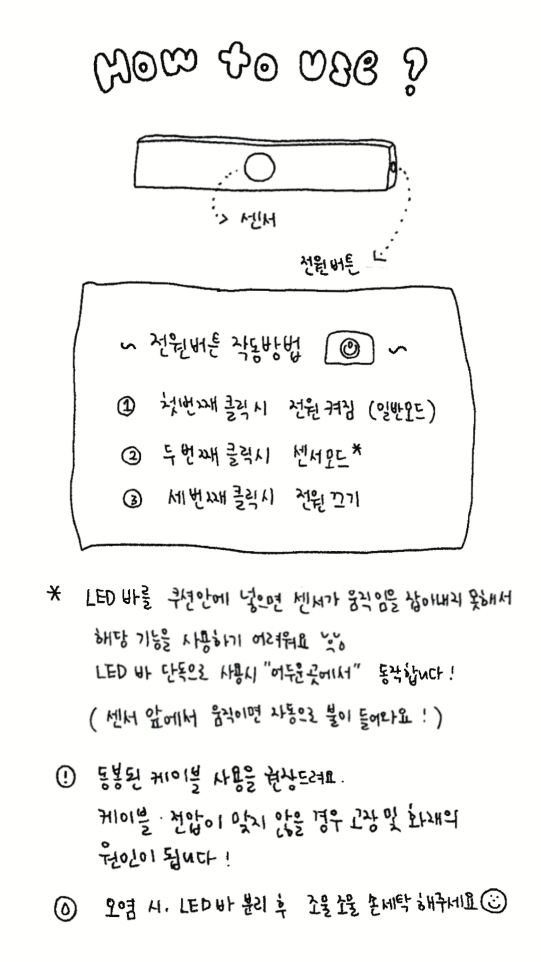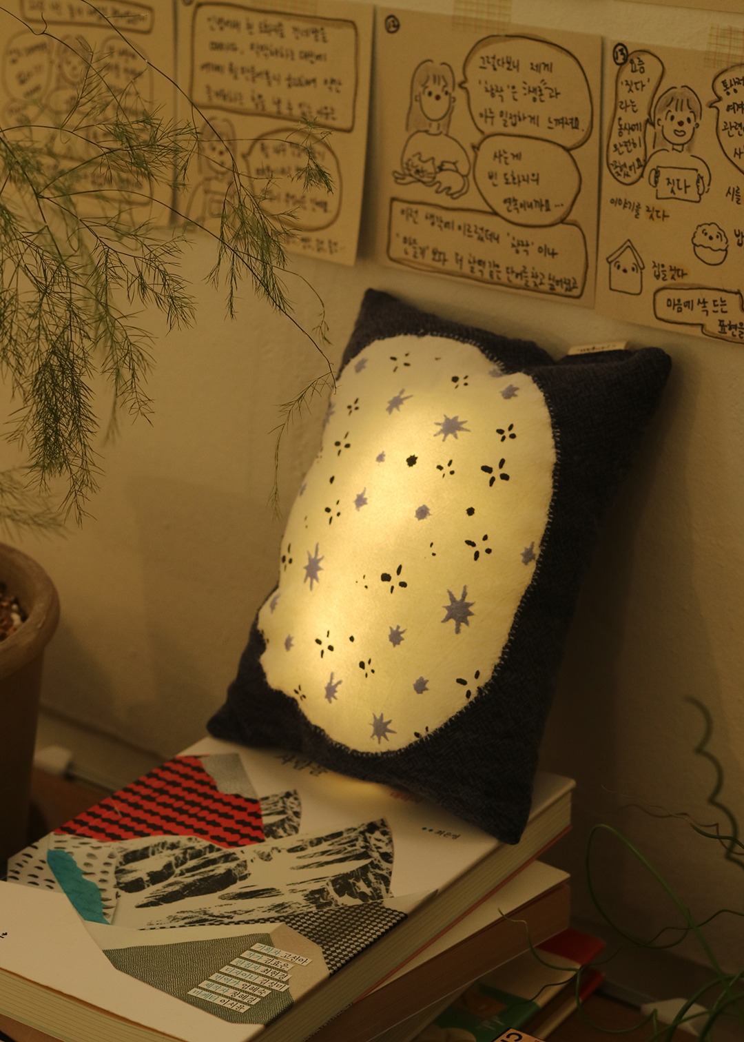 충전식 LED바*를 쿠션 안에 삽입해서 사용하는 무드등입니다.