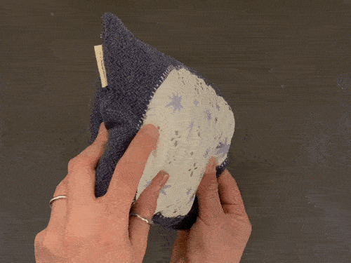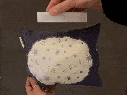 자투리천을 조합한 뒤 직접 재봉틀 페달을 밟아 완성한 핸드메이드 애착사물입니다.